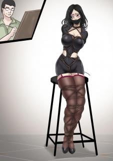 ◀今天的肖像课由KING老师主讲,为此卡菲特地穿了一件漂亮的连衣裙,作为绘画爱好者,她非常希望在人像领域有所进步。但是KING老师有个毛病,画人像容易跑偏,画着画着......这画风就不太对劲了,连衣裙被橡皮擦掉变成了制服,一双藏在裙子里的大长腿突然被穿上了黑丝,就连手也被画到了背后,只是KING老师不知道今天的授课用笔由半岛束艺台提供,此笔在半岛的地盘上就没正常过,画什么变什么。所以,最后的结果就是这样了,但KING老师似乎还意犹未尽,伴随着画笔的刷刷声,绳子和胶布也应招前来助阵,不到几分钟,一幅栩栩如生的《卡菲学画》完成了,再也没有比这更生动的样板,再也没有比这更身临其境的课程。