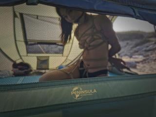 ◀一动不能动的美人鱼缇娜只能端坐在帐篷里,近在咫尺的游人只要稍微往里望一眼就可以看到这条除了内裤、绳子和口球什么也没有的美人鱼。台长特地跑到很远的地方以游客视角观察,发现帐篷就是摆设,毫无秘密可言。