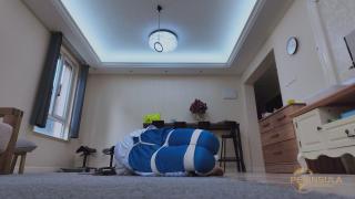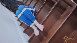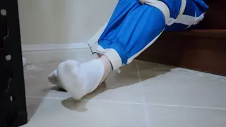 ◀为了避免上楼时滑倒,她竟然可以在这种状态下脱掉袜子。