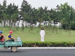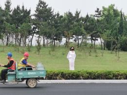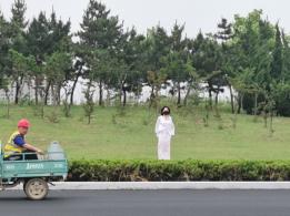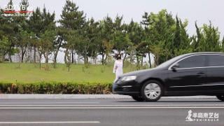 以往的户外拍摄,台长一般不会离模特太远,因为这样容易引起误会,但台长这次决定冒一下险,采取隐蔽拍摄的方式,将海语绑于外套内独自站在车流量较大的路边,让司机师傅们也欣赏一下这道独特的风景。