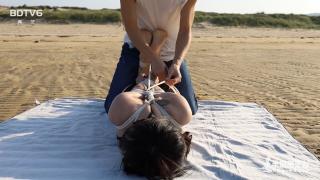 还是姑且介绍一下剧情吧,来到海边晒太阳的海语发现不远处有一个tent,周围却没有任何人的踪影,她希望在这些物品当中可以找到失主的联系方式,然而好心却换来了一顿惨绝人寰的捆绑,不远处有渔民和游人,虽然他们可以看到海语的奇怪造型,却听不到她带着口球的嘴发出的呼喊,大概以为是在做游戏吧。