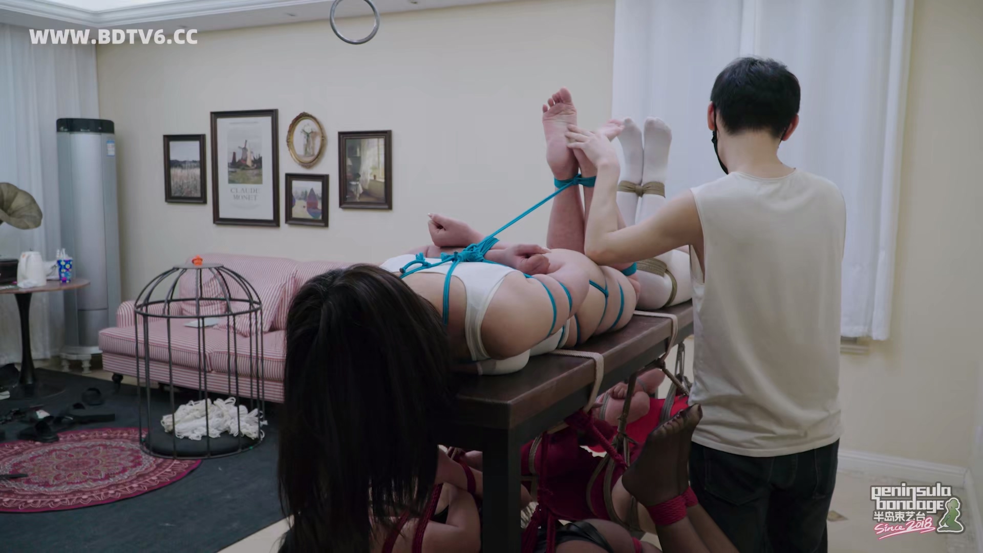 本集罕见的采用全过程记录,把每个人的捆绑和上桌全过程一一记录了下来,最后采用抢答问题方式依次下桌,每次人口达到三人以上必成欢乐海洋。