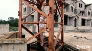此处表明风平浪静,实则身处深渊之上,矗立在这个烂尾小区中的塔吊下面是近10米深的地下车库,并且被积水覆盖,鹿野战战兢兢的在上面绑了几十分钟,还要忍受台长时不时的骚扰。