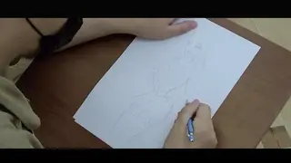 ◀今天的肖像课由KING老师主讲,为此卡菲特地穿了一件漂亮的连衣裙,作为绘画爱好者,她非常希望在人像领域有所进步。但是KING老师有个毛病,画人像容易跑偏,画着画着......这画风就不太对劲了,连衣裙被橡皮擦掉变成了制服,一双藏在裙子里的大长腿突然被穿上了黑丝,就连手也被画到了背后,只是KING老师不知道今天的授课用笔由半岛束艺台提供,此笔在半岛的地盘上就没正常过,画什么变什么。所以,最后的结果就是这样了,但KING老师似乎还意犹未尽,伴随着画笔的刷刷声,绳子和胶布也应招前来助阵,不到几分钟,一幅栩栩如生的《卡菲学画》完成了,再也没有比这更生动的样板,再也没有比这更身临其境的课程。