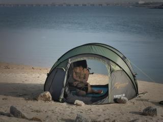 ◀一动不能动的美人鱼缇娜只能端坐在帐篷里,近在咫尺的游人只要稍微往里望一眼就可以看到这条除了内裤、绳子和口球什么也没有的美人鱼。台长特地跑到很远的地方以游客视角观察,发现帐篷就是摆设,毫无秘密可言。