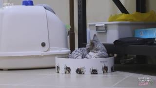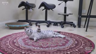 ◀清晨醒来的苏子发现家里来了一只小豹猫,遂玩之。豹猫身体修长,善攀爬,警惕性高,对于苏子的挑逗颇为不满,遂以激光射之,苏子被缚,求解,猫不理之。