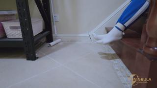 ◀为了避免上楼时滑倒,她竟然可以在这种状态下脱掉袜子。