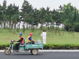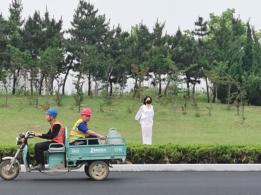 以往的户外拍摄,台长一般不会离模特太远,因为这样容易引起误会,但台长这次决定冒一下险,采取隐蔽拍摄的方式,将海语绑于外套内独自站在车流量较大的路边,让司机师傅们也欣赏一下这道独特的风景。