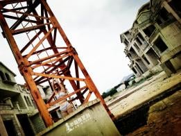 此处表明风平浪静,实则身处深渊之上,矗立在这个烂尾小区中的塔吊下面是近10米深的地下车库,并且被积水覆盖,鹿野战战兢兢的在上面绑了几十分钟,还要忍受台长时不时的骚扰。